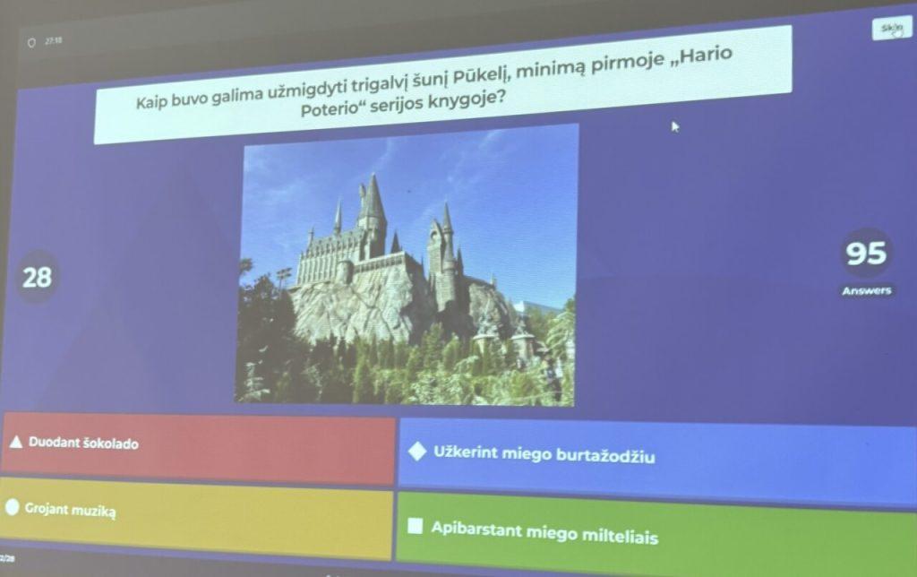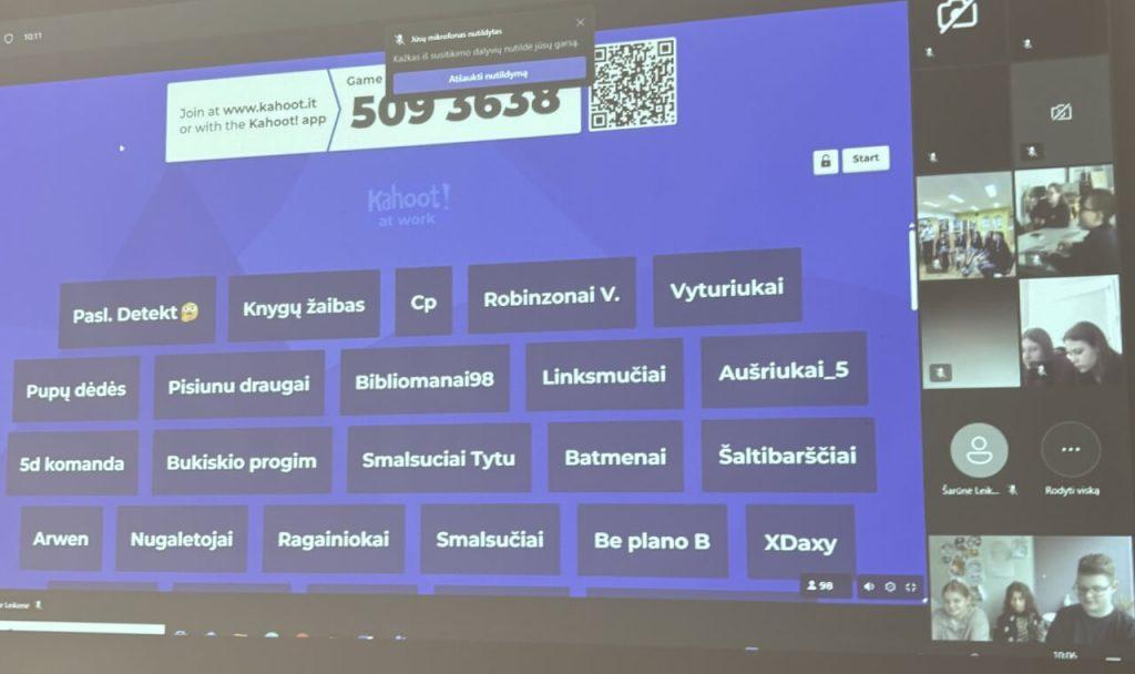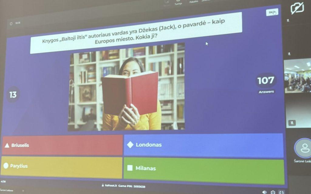 Spalio 14 dieną aštuntokai prisijungė prie smagios ir azartiškos skaitymo skatinimo iniciatyvos „Metai su knyga” literatūrinio protmūšio, kuris vyko „Kahoot” platformoje. Šiame renginyje galėjo dalyvauti 5–8 klasių mokiniai iš visos Lietuvos. Norintys prisijungti turėjo suburti 3–6 asmenų komandą ir ją užregistruoti. Mūsų komanda „Kieti riešutėliai” (Adam, Zofia, Evelina, Emilia, Tomaš, Iveta Ž.) varžėsi atsakydami į įvairius klausimus apie sportą, keliones, muziką literatūros kūriniuose ir kitus skaitymo bei literatūros pasaulį apimančius klausimus.