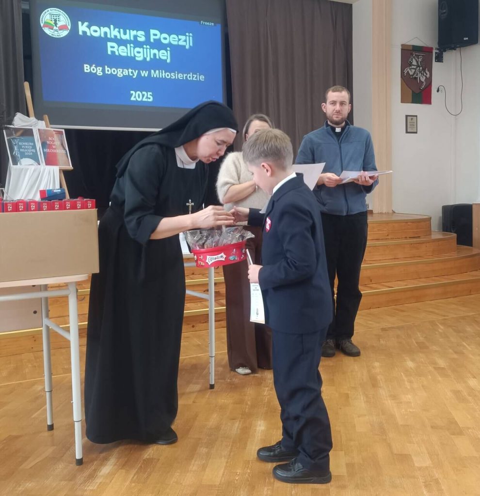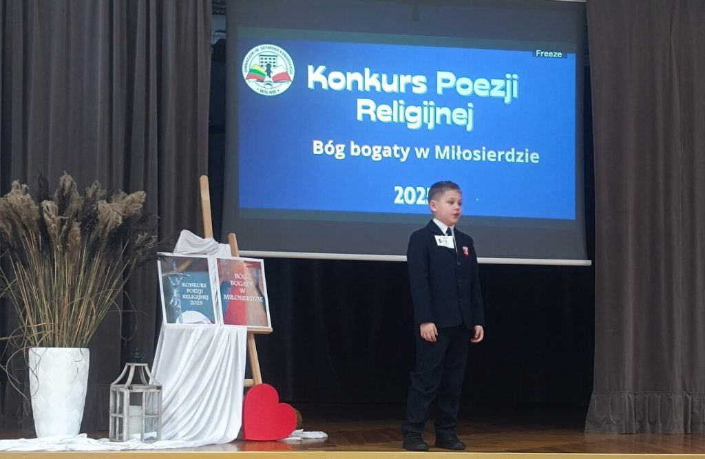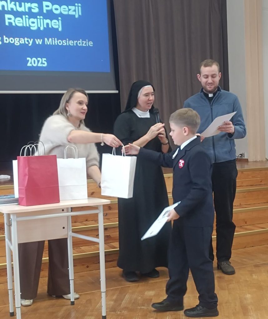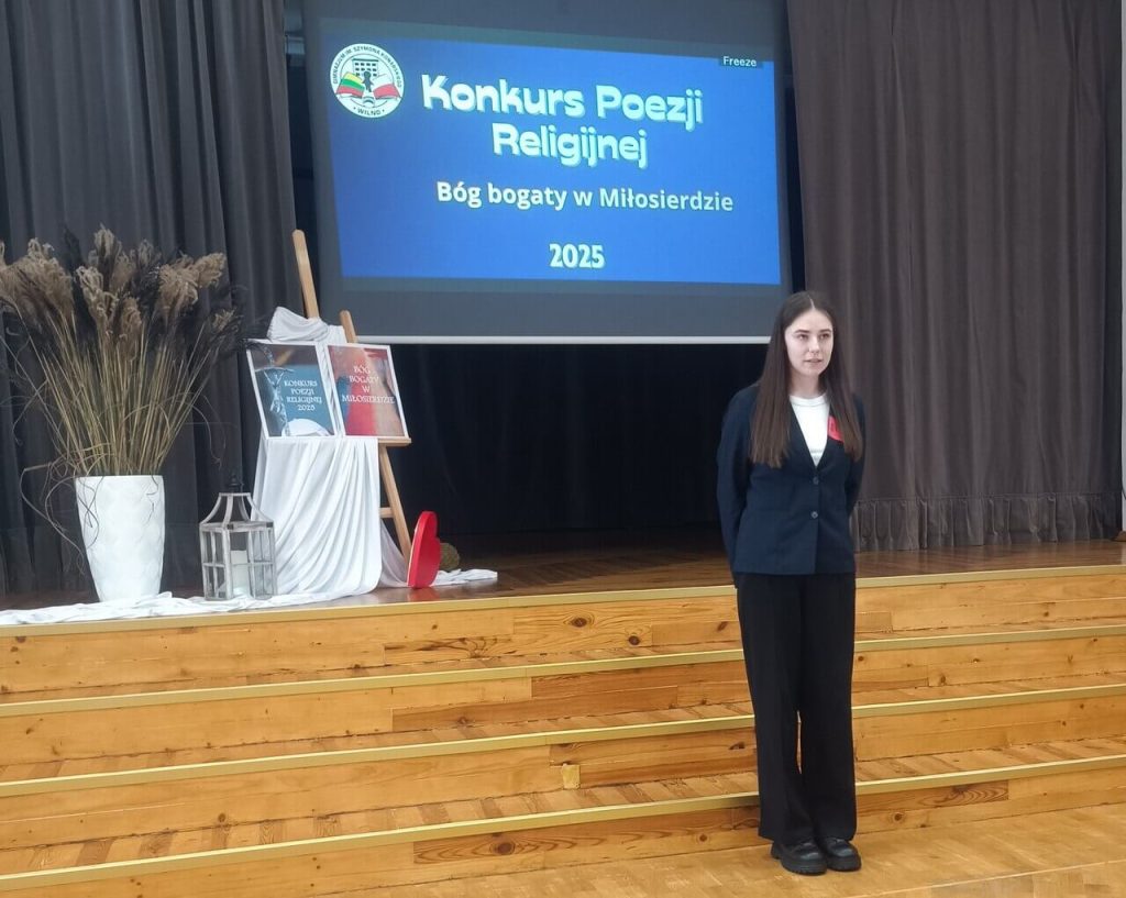 Pawła II i zachęca młodych twórców do refleksji nad tajemnicą Bożego Miłosierdzia – jego istotą, obecnością w życiu człowieka oraz znaczeniem dla współczesnego świata. Poprzez swoje recytacje nasi uczniowie chcieli również wyrazić wdzięczność Panu Bogu za dar Koronki do Bożego Miłosierdzia, której 90-lecie objawienia świętej Siostrze Faustynie obchodzimy w tym roku.