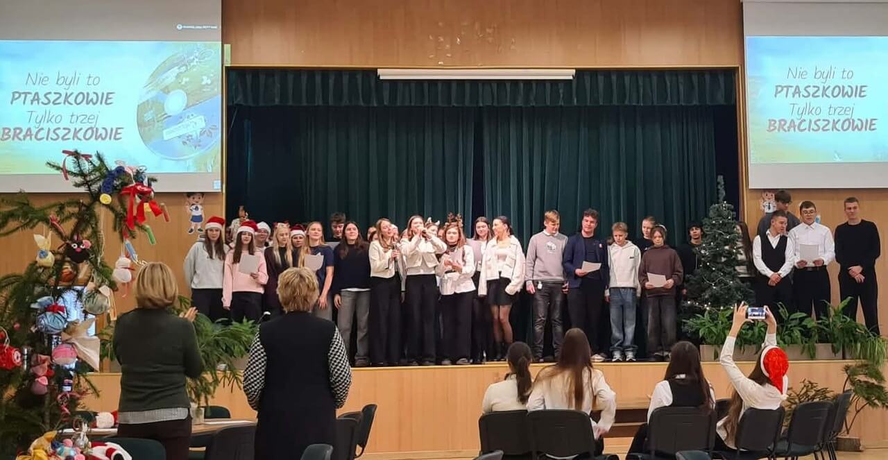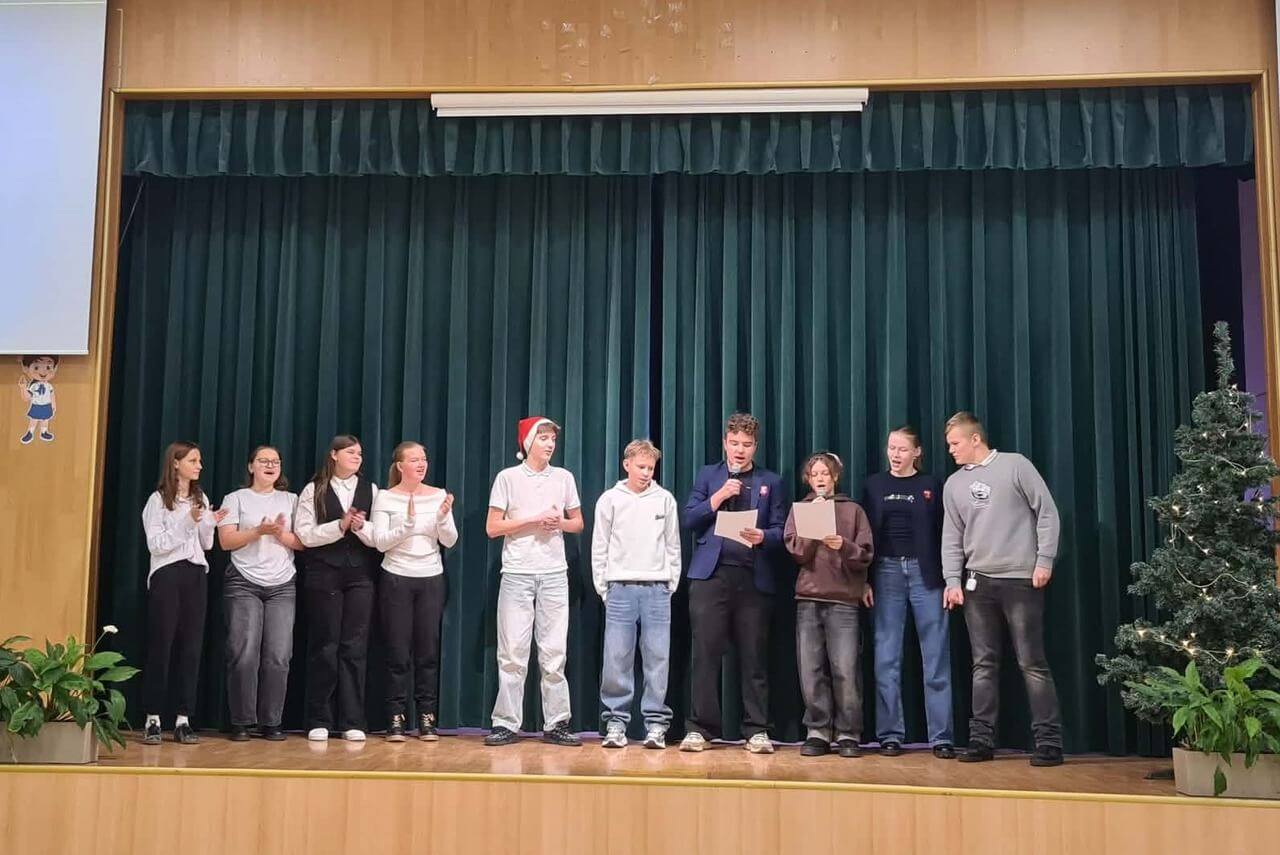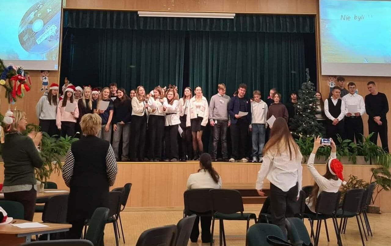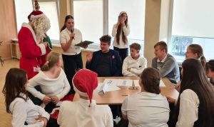 Ekomikołajki to coś więcej niż impreza – to spotkanie pełne współpracy, inspiracji i wspólnej nauki o środowisku. 5 grudnia uczniowie klas 8a i IG wraz z panią Alicją wzięli udział w szkoleniach ekologicznych zorganizowanych przez młodzież z Liceum im. Adama Mickiewicza w Wilnie. Na sali panowała świąteczna atmosfera, ponieważ swoją obecnością zaszczycił zebranych Mikołaj wraz ze swoją pomocnicą. Towarzyszyli uczestnikom spotkania i częstowali wszystkich cukierkami.