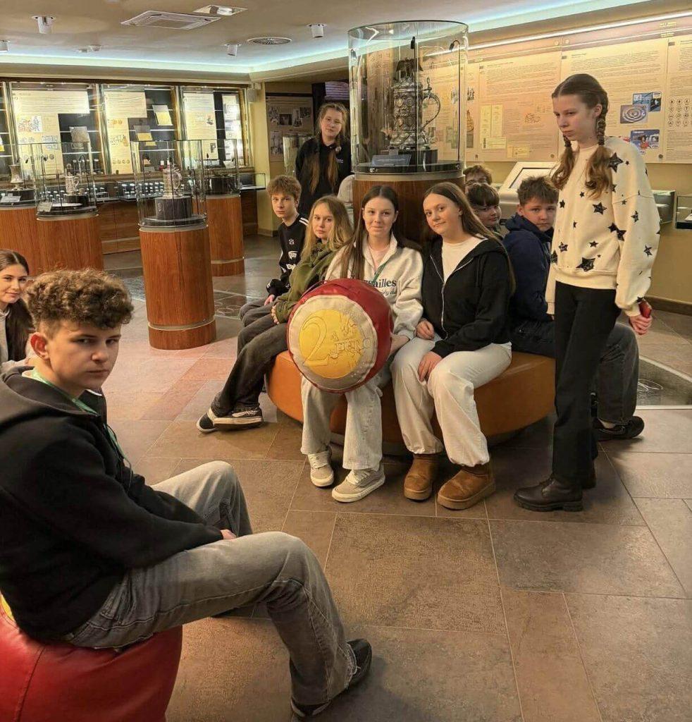 Ekskursijos metu sužinojome, kaip atsirado pinigai ir kaip jie keitėsi per skirtingus istorijos laikotarpius. Pasirodo, senovėje pinigais galėjo būti įvairios prekės – gyvuliai, kailiai, druska ar kiti vertingi daiktai. Vėliau atsirado metalinės monetos, dar vėliau – popieriniai banknotai, o šiandien naudojamos ir šiuolaikinės mokėjimo priemonės, tokios kaip banko kortelės. Taip pat išgirdome daugiau apie Lietuvos pinigus – buvusią nacionalinę valiutą litus ir dabar naudojamus eurus. Nors šios valiutos daugeliui atrodo gerai pažįstamos, jos slepia nemažai įdomybių. Sužinojome, kaip litai atrodė prieš 100 metų, kas buvo vaizduojama ant banknotų ir monetų bei kokias paslaptis jie slėpė. Taip pat aptarėme, kas pavaizduota ant eurų ir kaip galima atpažinti suklastotus pinigus.