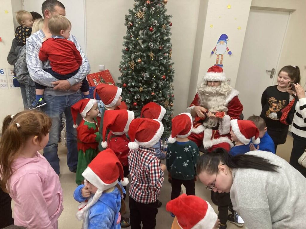 Po edukacijos visi nekantriai laukė ypatingo svečio – Kalėdų Senelio. Jis atėjo ne tik su dovanomis, bet ir su stebuklais bei tikėjimu, kad kiekvieno vaiko širdyje gyvena mažas kalėdinis džiaugsmas. Jo pasirodymas suteikė vaikams daug teigiamų emocijų, juoko ir nuoširdaus džiaugsmo – vaikai kartu su Kalėdų Seneliu žaidė, šoko ir dainavo, mėgavosi buvimu kartu. Visa šventė buvo pripildyta šilumos, juoko ir bendrų akimirkų, kurios išliks vaikų ir jų šeimų