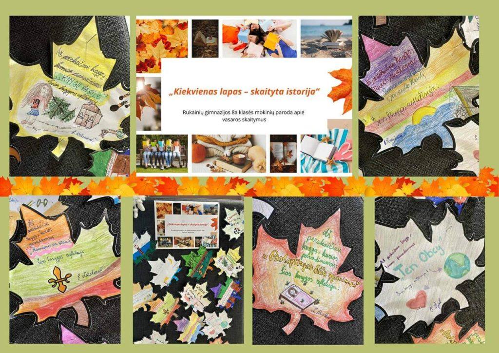 Rugsėjį mūsų gimnazijos bibliotekoje sužibo originali 8a klasės mokinių kūrybinių darbų paroda „Kiekvienas lapas – skaityta istorija”, skirta vasaros skaitymų refleksijai.