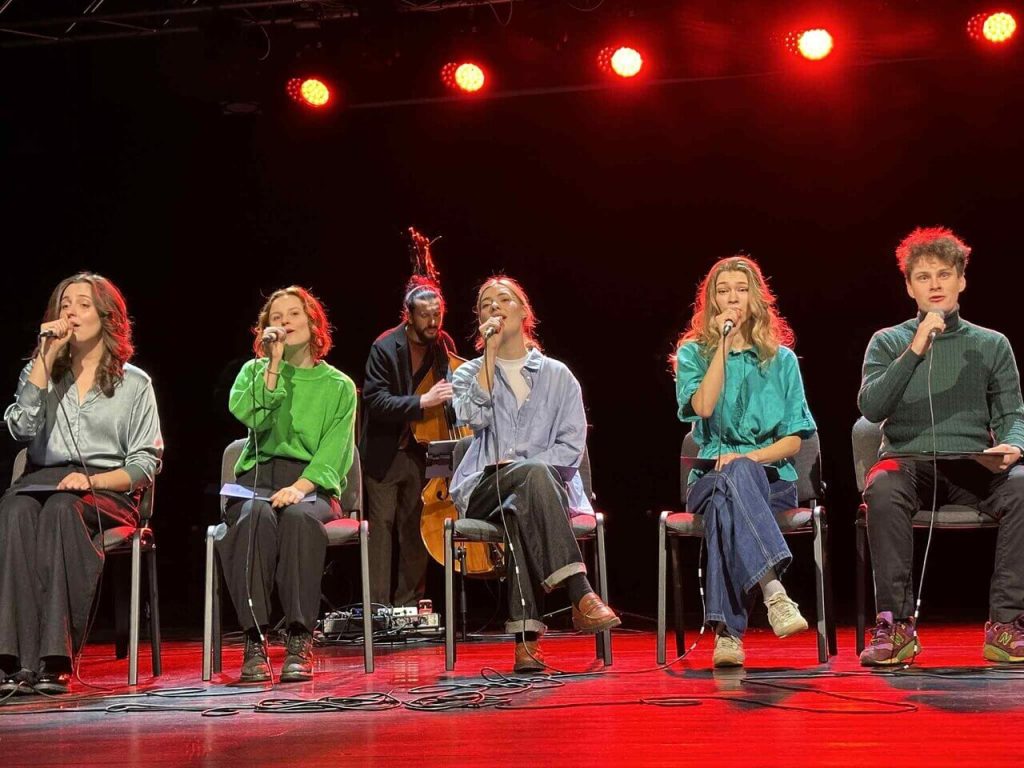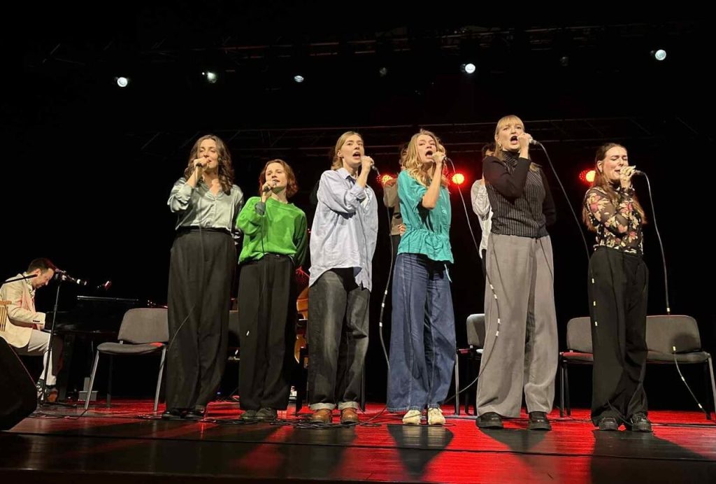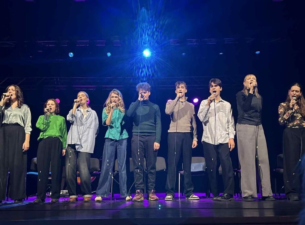 W piątek, 5 grudnia, o godzinie 12.00 uczniowie klas IIG i IIIG wraz ze swoimi wychowawczyniami mieli okazję uczestniczyć w wyjątkowym wydarzeniu artystycznym, które odbyło się w Centrum Kultury w Solecznikach. Tego dnia młodzież obejrzała koncert poezji śpiewanej „Tuwim na głosy: Kwiatowanie”, przygotowany przez studentów Akademii Teatralnej im. Aleksandra Zelwerowicza w Warszawie. Program koncertu oparto na tekstach Juliana Tuwima, do których muzykę skomponował Mateusz Dębski. To właśnie jego fascynacja twórczością poety – szczególnie „Kwiatami polskimi” i wybranymi wierszami – stała się impulsem do stworzenia całego projektu. Studenci trzeciego roku Wydziału Aktorskiego zaprezentowali interpretacje utworów Tuwima, wykonane przy akompaniamencie fortepianu, na którym grał sam kompozytor, oraz kontrabasu, obsługiwanego przez Wojciecha „Gumisia” Gumińskiego. Koncert był okazją do odkrywania poezji w zupełnie innej, muzycznej odsłonie.
