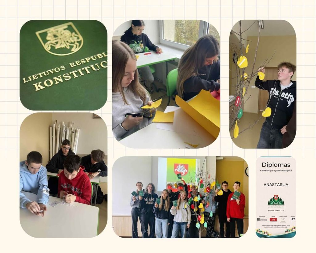 IIG klasės mokiniai sukūrė „Demokratijos medį”, kuriame pavaizdavo svarbiausias mūsų valstybės vertybes. IG, IIIG klasių mokiniai nagrinėjo Konstitucijos straipsnius, aiškinosi jų prasmę, diskutavo, kūrė piešinius ir atliko kūrybines bei interaktyvias užduotis. Vyresnieji mokiniai pasitikrino savo žinias dalyvaudami visuotiniame LR Konstitucijos egzamine.