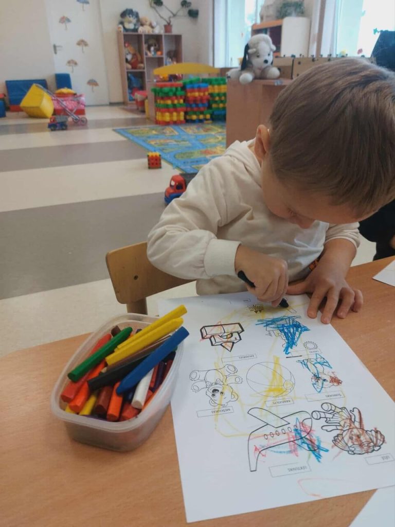 2025 m. lapkričio 11 d. Rukainių gimnazijos Rukainių ikimokyklinio ugdymo skyriuje „Nykštukų” grupėje vyko smagus lietuvių kalbos užsiėmimas „Žaislai‘”. Užsiėmimo tikslas – turtinti vaikų žodyną, mokyti taisyklingai įvardyti žaislus, lavinti sakytinės kalbos gebėjimus, ugdyti teigiamą požiūrį į lietuvių kalbą per žaidimą ir kūrybą. Užsiėmimo pradžioje vaikai mokėsi ištarti naujus lietuviškus žodžius: meškiukas, lėlė, automobilis, kamuolys, kaladėlės ir kitus. Mokytoja su vaikais aptarė, kokių žaislų jie turi namuose, kokie jų mėgstamiausi žaidimai. Vaikai klausėsi trumpų pasakojimų ir eilėraštukų apie žaislus. Vėliau ikimokyklinukai ieškojo paslėptų žaislų darželyje, sakė jų pavadinimus lietuviškai, kartojo žodžius poromis, žaidė žaidimą „Žaislų parduotuvė”. Žaisdami vaikai ne tik mokėsi naujų žodžių, bet ir drąsiai bendravo tarpusavyje, stengėsi taisyklingai tarti žodžius. Grupės ,,Nykštukai‘ ugdytiniai nuspalvino labiausiai patikusius žaislus ir pristatė juos draugams. Piešinių paroda tapo gražiu užsiėmimo akcentu. Užsiėmimo pabaigoje darželinukai pakartojo naujus žodžius, mokytoja pagyrė juos už pastangas kalbėti lietuviškai. Mažieji dalyviai džiaugėsi, kad mokytis galima smagiai – piešiant, žaidžiant ir kalbant apie tai, kas jiems įdomu.
