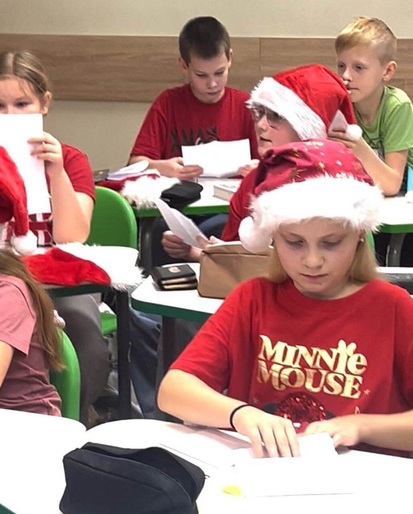 W mikołajkowym klimacie uczniowie klasy 4a wyruszyli w językowo-kulturową przygodę, współpracując z rówieśnikami ze szkół początkowych w Polsce. Czwartoklasiści czytali listy, które przysłali im rówieśnicy z Polski; pisali odpowiedzi oraz świąteczne życzenia, doskonaląc umiejętność redagowania tekstu; brali udział w mikołajkowym słuchowisku; rozwiązywali zadania w formie Mikołajkowego Escape Roomu, obejmującego różne dziedziny wiedzy: matematyczne, językowe, logiczne i kreatywne; uczestniczyli w bieganym dyktandzie o Mikołaju, łącząc ruch z nauką – zgodnie z założeniami nowoczesnych metod dydaktycznych.