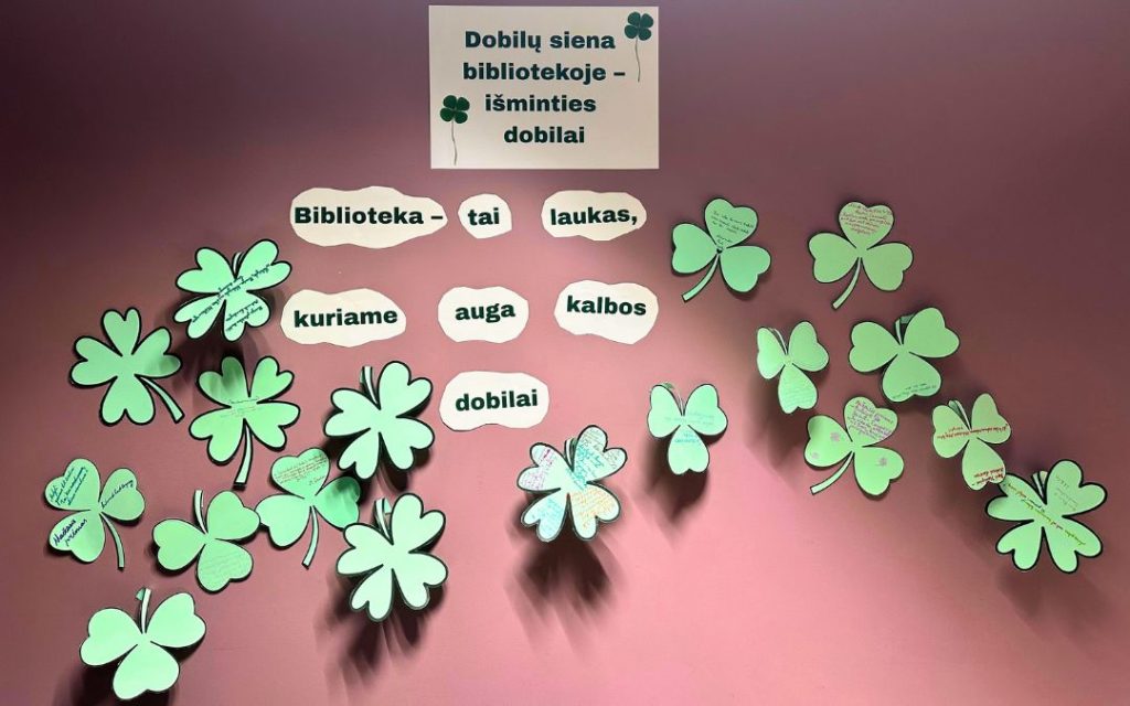 Minint Lietuvių kalbos dienas gimnazijoje, IIG klasės mokiniai pertraukų metu gimnazijos bibliotekoje sukūrė kūrybinę „Dobilų…