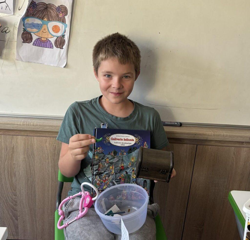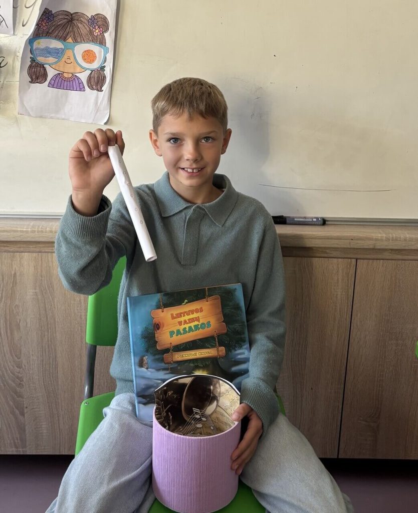 Spalio 2 dieną 5a klasės mokiniai neįprastu būdu pristatė per vasaros atostogas perskaitytas knygas. Šį kartą jie ne tik glaustai apibūdino kūrinio pagrindinę mintį, temą, pasakojo apie veikėjus, bet ir pasitelkė kūrybiškumą – sukūrė „knygų dėžutes”. Į šias dėžutes penktokai sudėjo simbolinius daiktus, atspindinčius knygos turinį, veiksmą, vietą, laiką, veikėjus ar pagrindines problemas. Kiekvienas mokinys paaiškino, kodėl pasirinko būtent tokius daiktus ir ką jie simbolizuoja. Tokiu būdu knygų pristatymai virto ne tik pasakojimu, bet ir vizualiu, įtraukiančiu potyriu.
