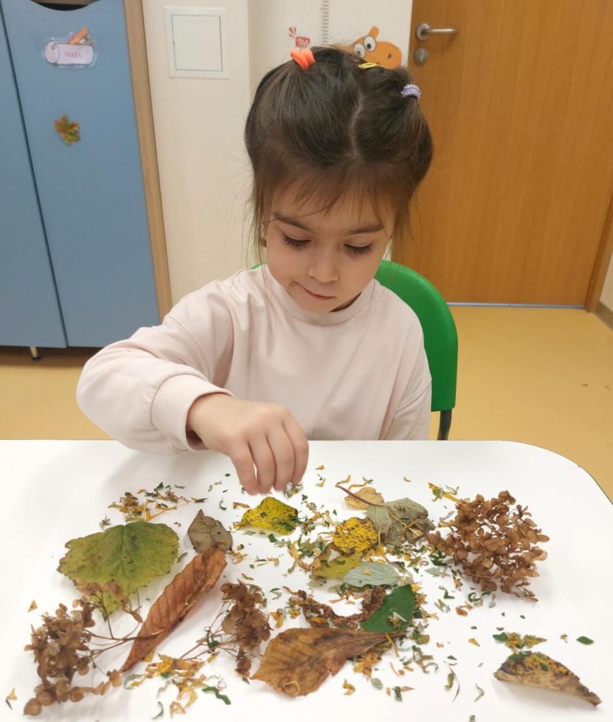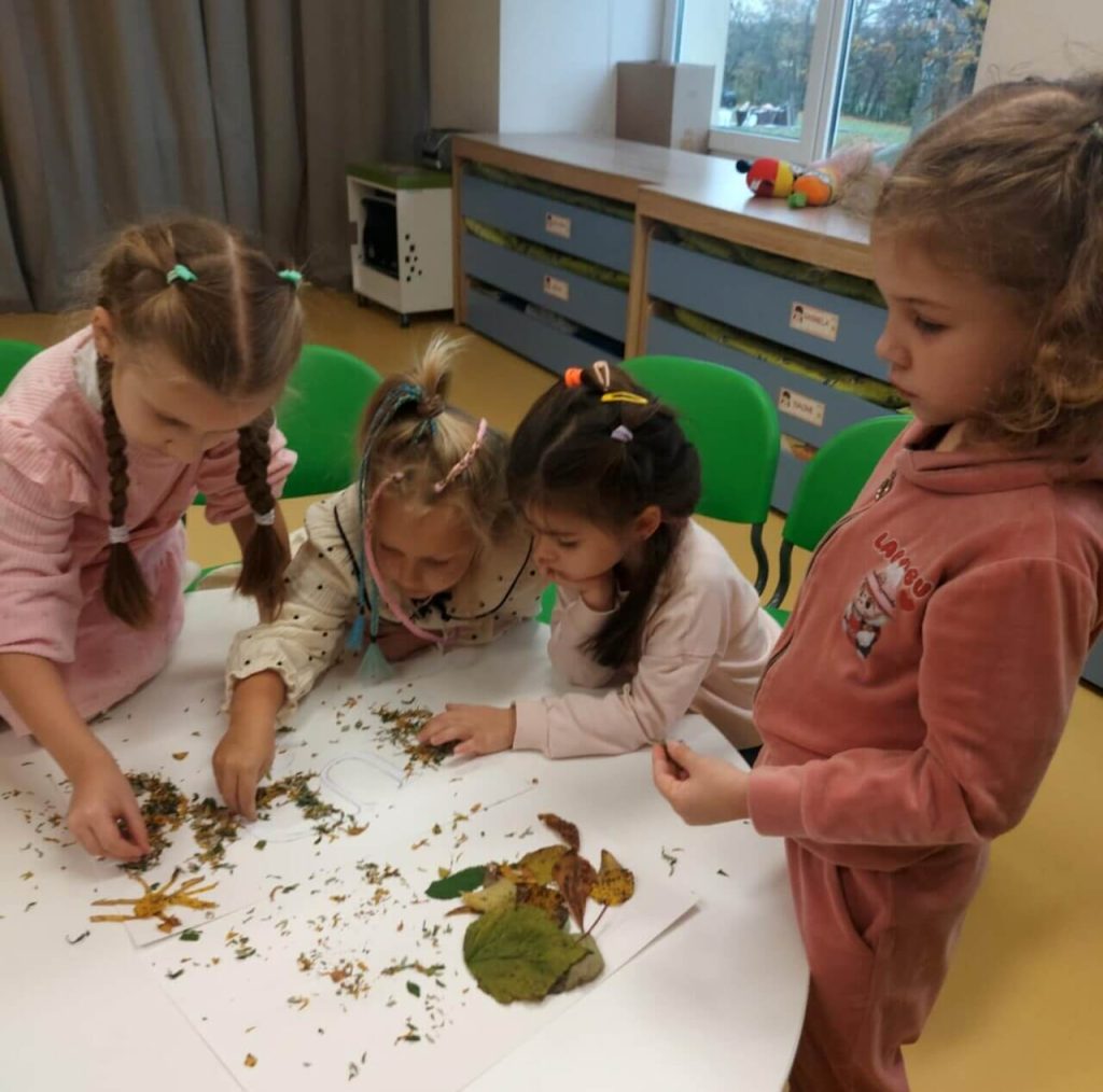 Rudenėlis pakvietė vaikus stebėti gamtos pokyčius, rinkti rudens gėrybes, tyrinėti lapų spalvas, orų kaitą ir visa tai perteikti kūrybiniuose darbuose. Priešmokyklinukai susipažino su natūraliomis gamtinėmis medžiagomis, jų savybėmis. Iš lapų sudėliojo žodį „Ruduo” ir sukūrė gražią rudenišką kompoziciją. Dalyvaudami šiame projekte ugdytiniai ne tik geriau pažino gamtą, pagilino supratimą apie jos dėsnius bei pokyčius, bet išmoko naujų lietuviškų žodžių, susijusių su rudeniu. Vaikai mokėsi pasakoti, apibūdinti, dalintis įspūdžiais, taip praturtindami savo žodyną ir kalbinę raišką.