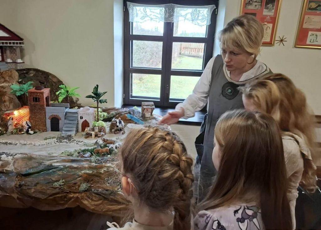 Na zakończenie wizyty maluchy miały okazję obejrzeć piękną szopkę betlejemską oraz wysłuchać interesującej opowieści o narodzeniu Jezusa. Zajęcia dostarczyły dzieciom wielu wrażeń, wiedzy o tradycjach oraz radości z tworzenia własnych świątecznych ozdób. Serdecznie dziękujemy dyrektor muzeum Pani Helenie Bakuło oraz metodyk muzeum Pani Annie Taukin za wspaniałe zajęcia edukacyjne oraz ciepłą, świąteczną atmosferę.