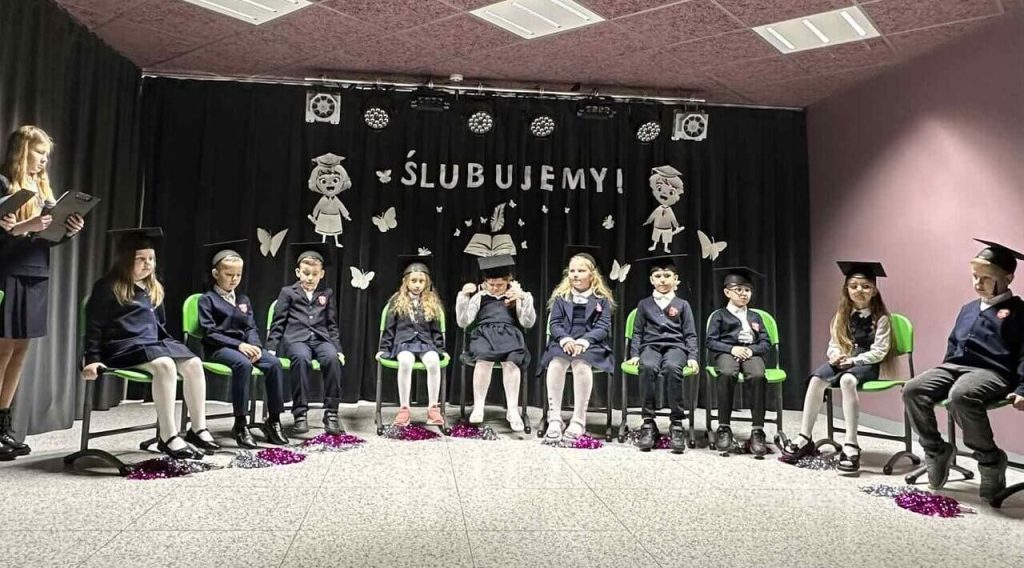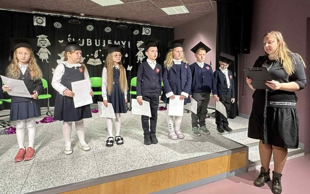 Na zakończenie uroczystości wykonano pamiątkowe zdjęcia, które będą piękną pamiątką tego ważnego dnia. Uśmiechnięte twarze dzieci świadczyły o ich dumie i radości z zostania pełnoprawnymi uczniami.