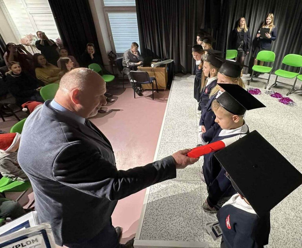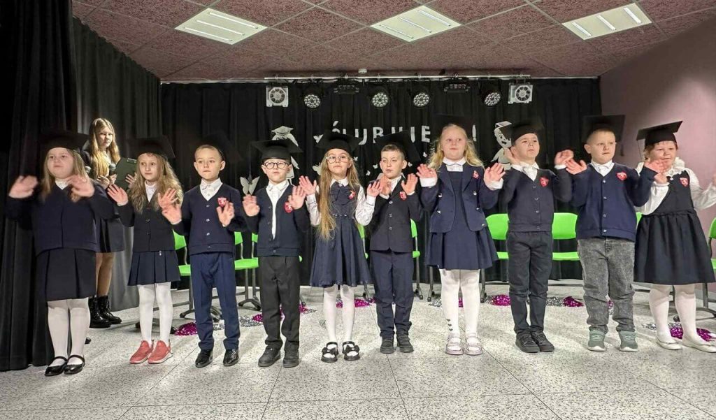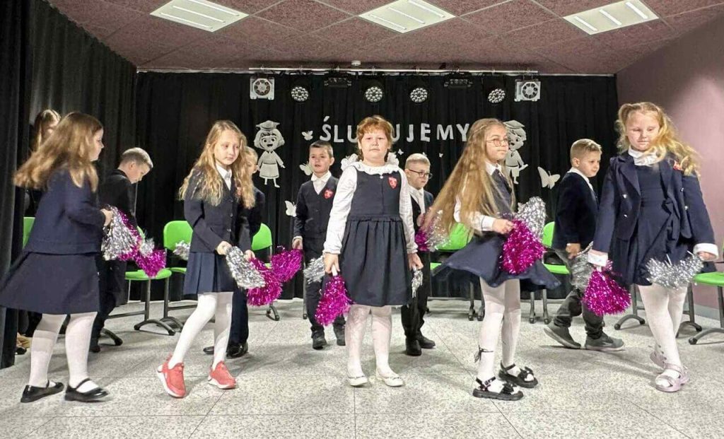 Najważniejszym momentem wydarzenia było uroczyste ślubowanie. Pierwszoklasiści dumnie przyrzekali być pilnymi uczniami, dobrymi kolegami oraz godnie reprezentować swoją szkołę. Następnie pan dyrektor dokonał symbolicznego pasowania wielkim ołówkiem, oficjalnie włączając dzieci do grona uczniów. Życzył im, aby czuli się tu dobrze, bezpiecznie i każdego dnia odkrywali radość płynącą z nauki.