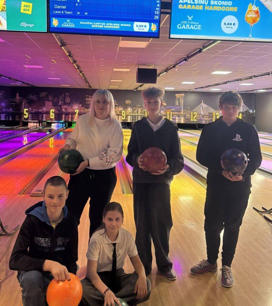 Vėliau boulingo centre laukė aktyvi ir linksma komandinė veikla – draugiškos varžybos, bendravimas ir palaikymas vieni kitų. Ši patirtis padėjo mokiniams suprasti, kaip svarbu bendradarbiauti, palaikyti komandos dvasią ir džiaugtis bendru rezultatu.