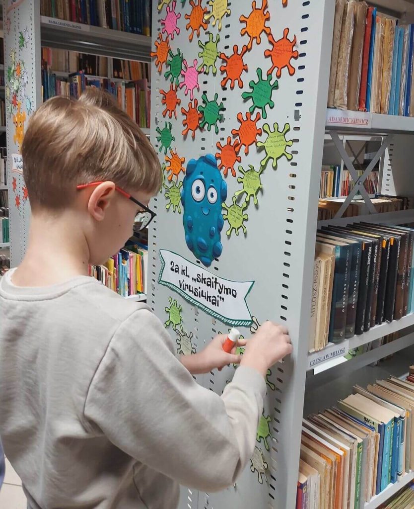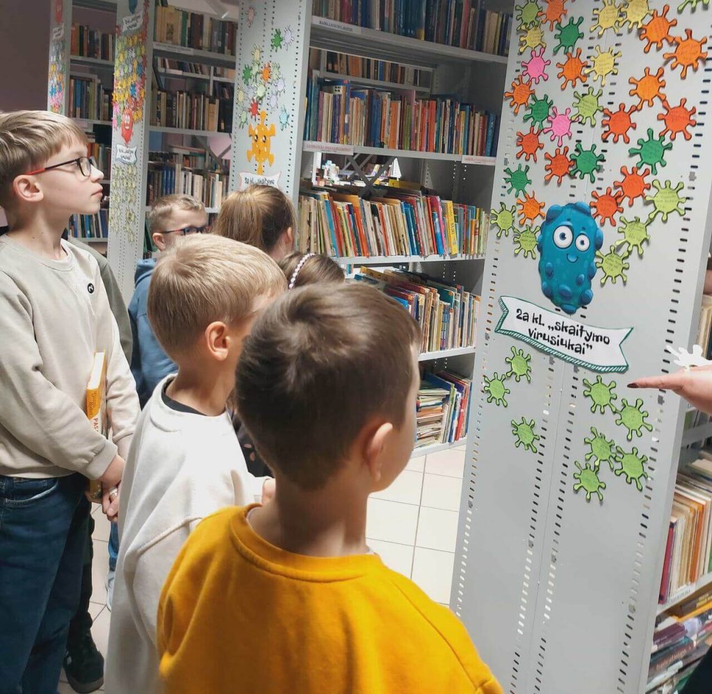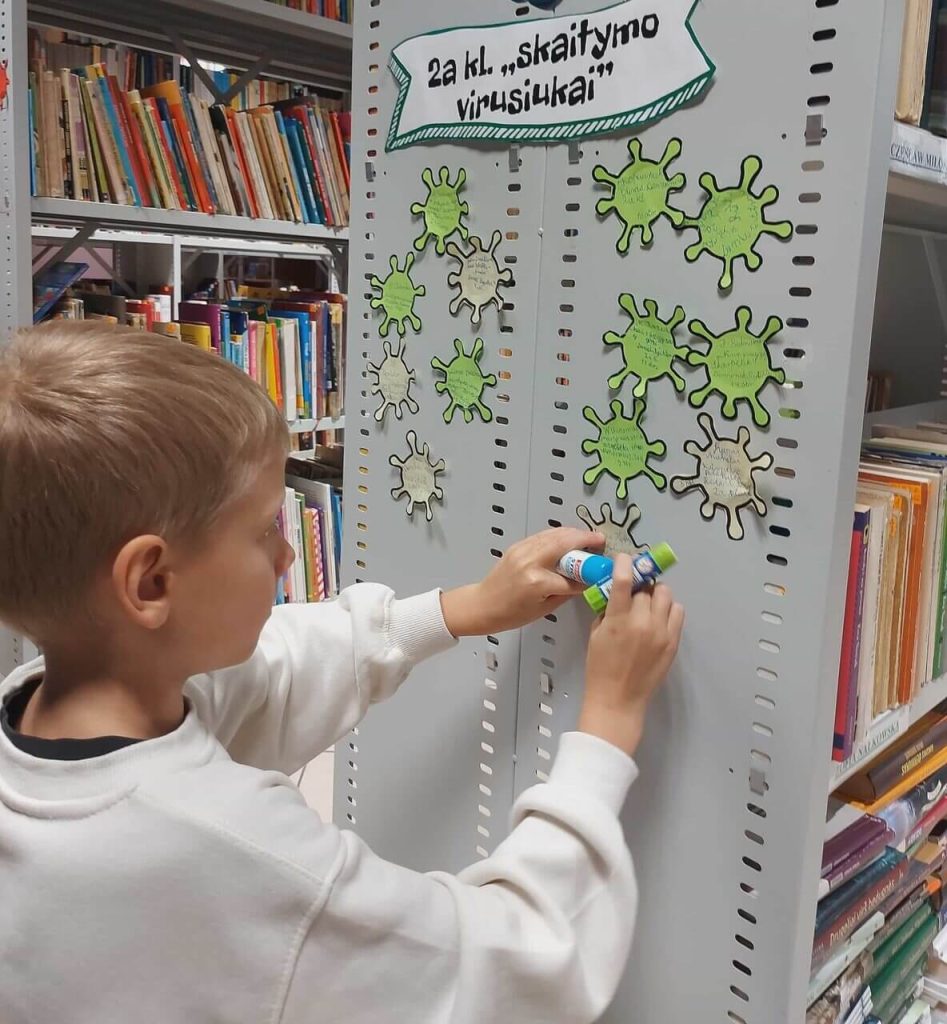Mokiniai vartė ir skaitė knygas, aptarė veikėjus. Kai kurie atrado naujų mėgstamų autorių, o kiti džiaugėsi pirmą kartą patys išsirinkę knygą. 2a klasės mokiniai ant stendo pakabino savo pirmąjį „skaitymo virusiuką”.