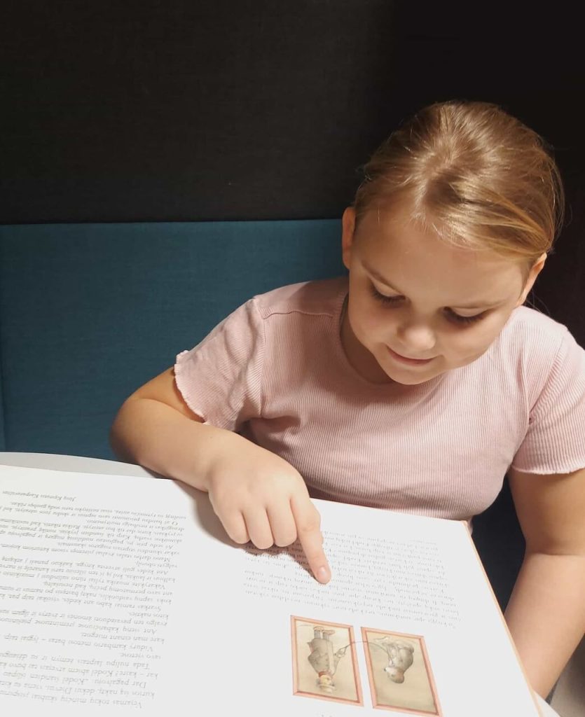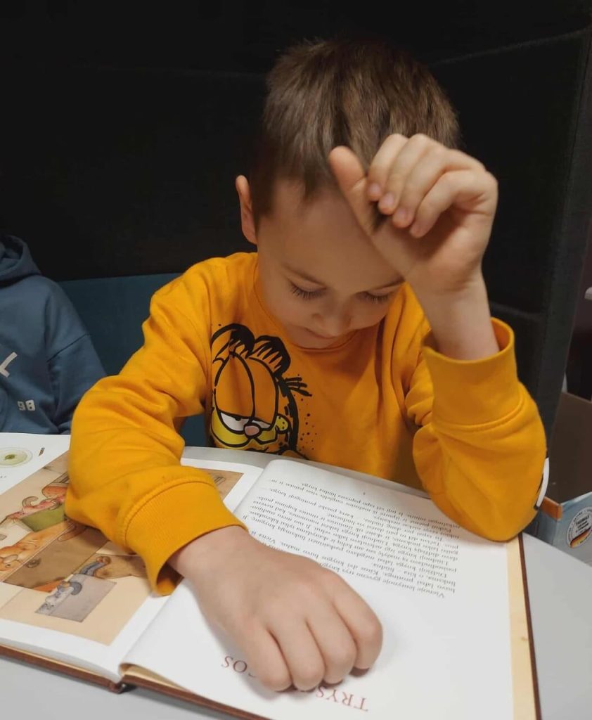 Antrokai susidomėję klausėsi pasakojimo apie „skaitymo virusiuką” – gerąjį skaitymo užkratą, kuris skatina domėtis knygomis, skaityti daugiau ir dalintis įspūdžiais su draugais. Pradinukai sužinojo, kad kuo daugiau skaitai, tuo stipriau „užsikreti“ skaitymo džiaugsmu.