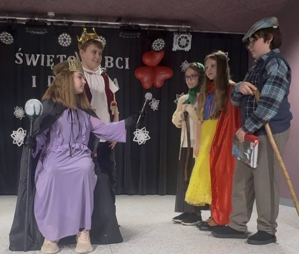Podczas koncertu dzieci recytowały wiersze, śpiewały piosenki i tańczyły, wprowadzając wszystkich w radosny, świąteczny nastrój. Szczególnym punktem programu było przedstawienie scenki teatralnej pt. „Śnieżna Królowa”, przygotowane przez uczniów klasy czwartej. Spektakl zachwycił widzów barwną scenografią i piękną grą młodych aktorów.