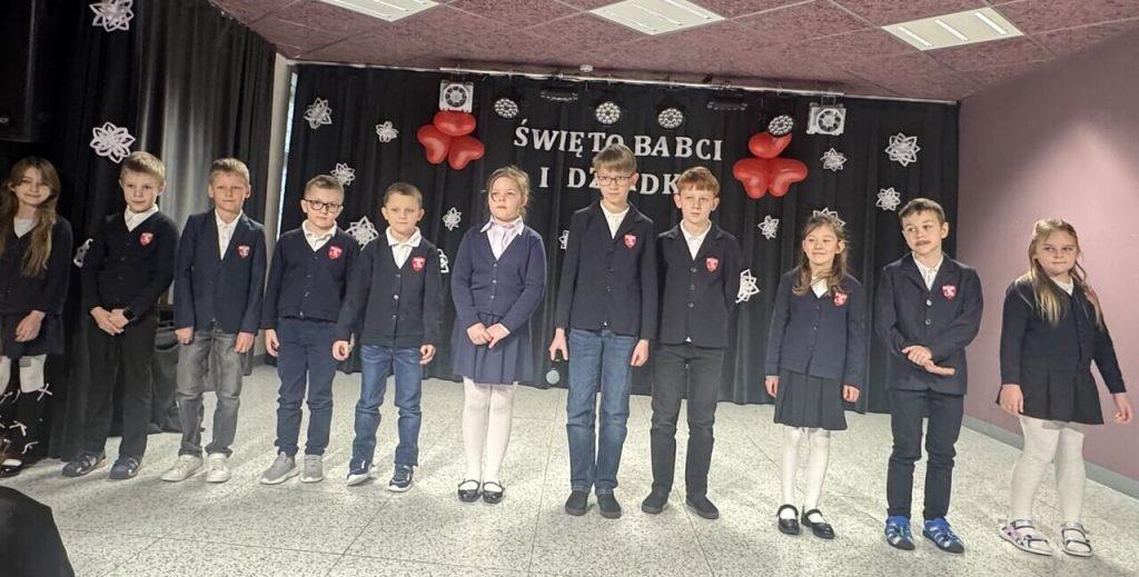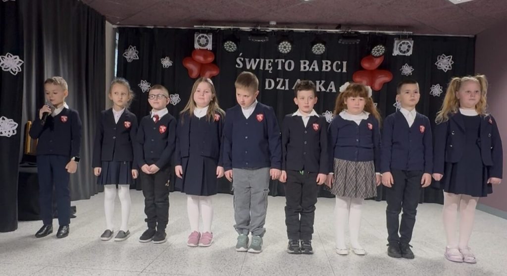 22 grudnia w naszym gimnazjum odbyło się tradycyjne Święto Babci i Dziadka, połączone ze świątecznym koncertem przygotowanym przez najmłodszych. W uroczystości udział wzięli uczniowie klas 1–4 oraz dzieci z grupy przygotowawczej. Wszyscy z ogromnym zaangażowaniem zaprezentowali swoje talenty przed licznie zgromadzoną publicznością.