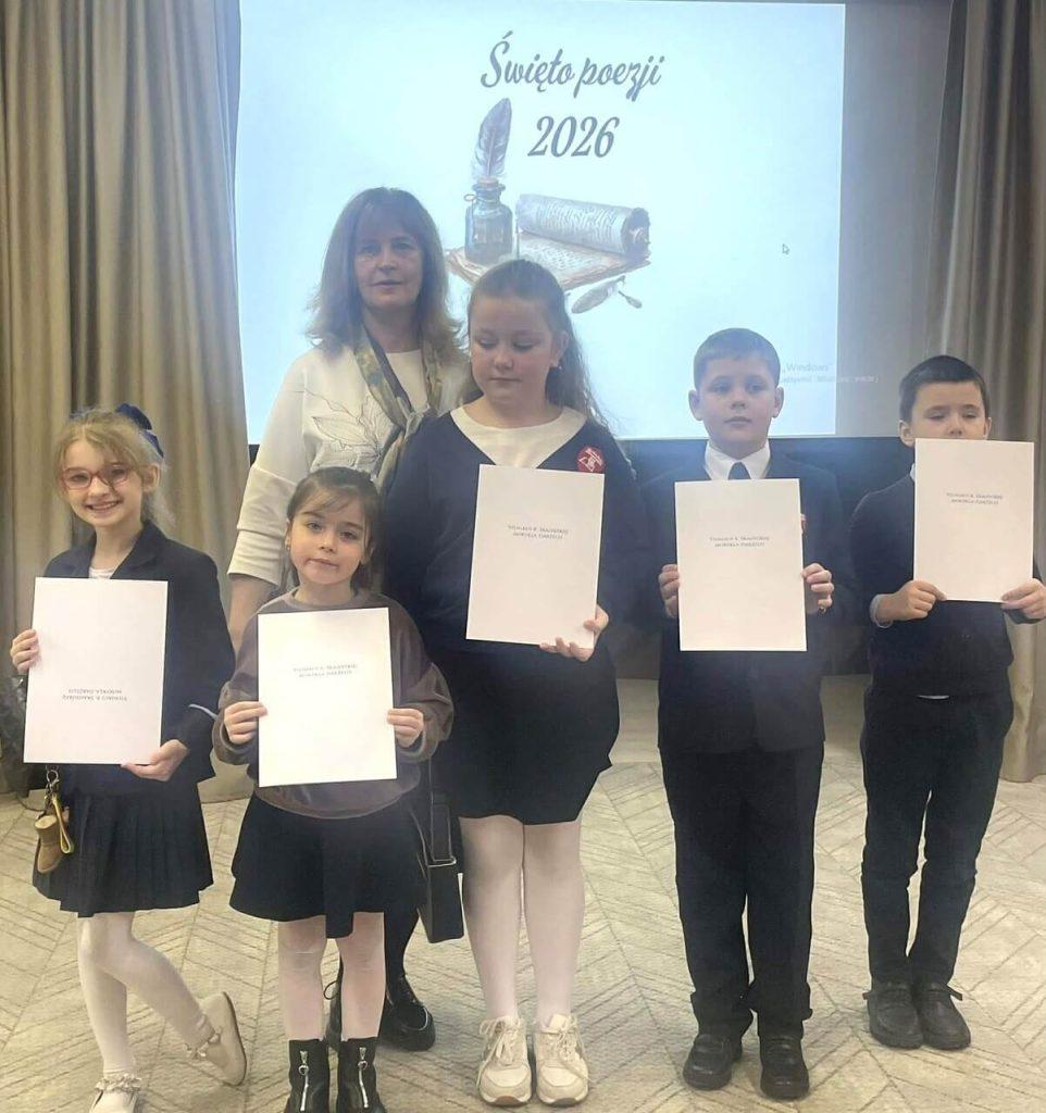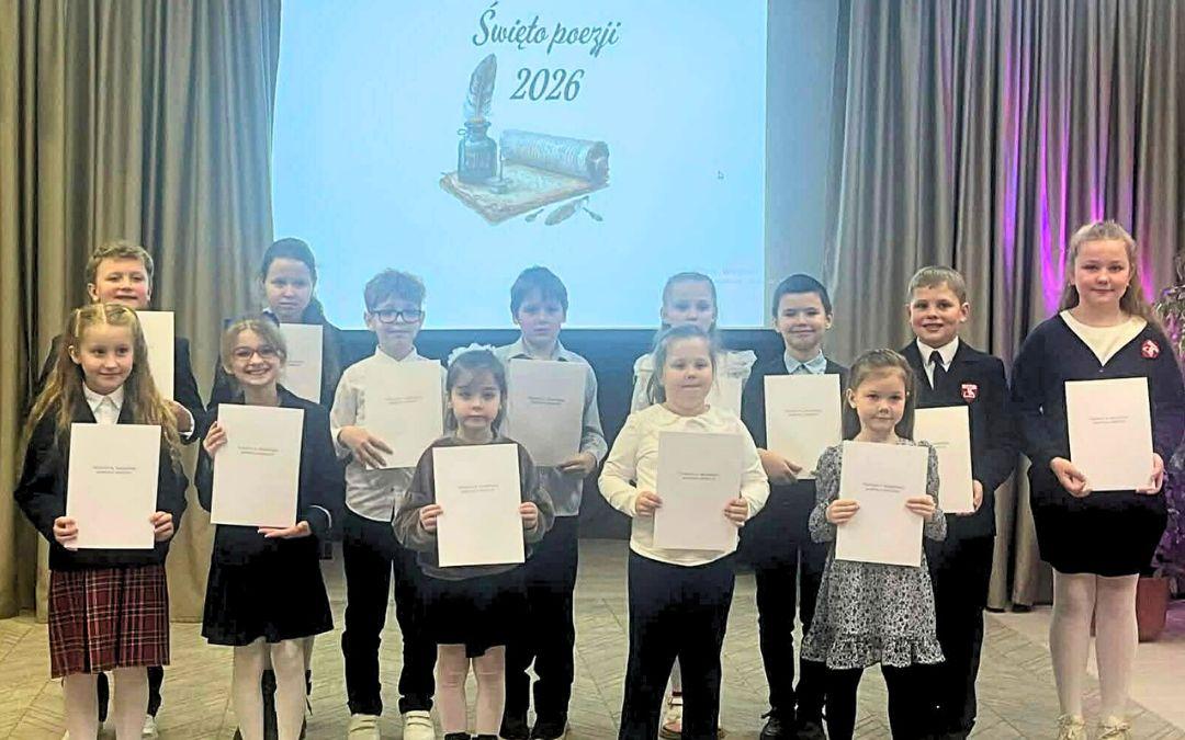 20 marca 2026 roku w Szkole-Przedszkolu w Skojdziszkach odbył się II etap konkursu recytatorskiego „Święto Poezji 2026”. Wydarzenie zgromadziło wielu utalentowanych uczniów, którzy z ogromnym zaangażowaniem i wrażliwością zaprezentowali wybrane utwory poetyckie. Nasi uczniowie wykazali się znakomitym przygotowaniem oraz wysokim poziomem artystycznym. Ich występy zachwyciły zarówno jury, jak i publiczność. Wśród pięciu pierwszych miejsc aż cztery zdobyli reprezentanci