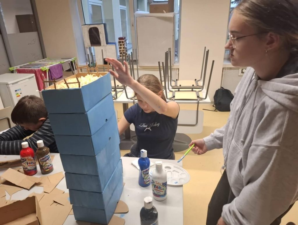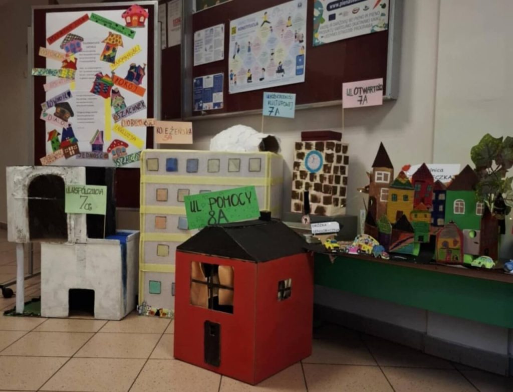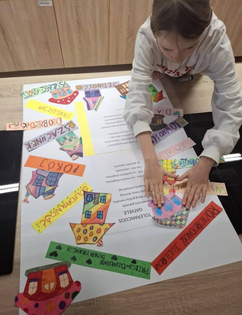 Vėliau mokiniai atliko kūrybinę užduotį – kiekvienas sukūrė savo namuką, simbolizuojantį jų supratimą apie toleranciją. Šiuos namukus sujungėme į bendrą Tolerancijos miestelį. Gatvėms mokiniai suteikė ypatingus pavadinimus: Draugystės, Atvirumo, Tolerancijos, Pagalbos, Pagarbos, Supratimo, Vilties ir kitus – žodžius, atspindinčius jų vertybes ir svajones. Taip gimė spalvinga, prasminga mokinių sukurta erdvė, primenanti, kad tolerancija prasideda nuo kiekvieno iš mūsų – nuo mažų kasdienių žingsnių, šiltų žodžių ir gebėjimo priimti kitą tokį, koks jis yra. Šis projektas ne tik papuošė mokyklą, bet ir sustiprino bendruomeniškumą, skatino empatiją bei kūrybišką saviraišką.