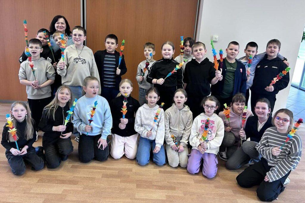 Podczas zajęć uczniowie nie tylko rozwijali swoje zdolności manualne, ale również poznawali tradycje związane z Niedzielą Palmową. Wspólna praca sprzyjała integracji – uczniowie chętnie współpracowali i wymieniali się pomysłami.